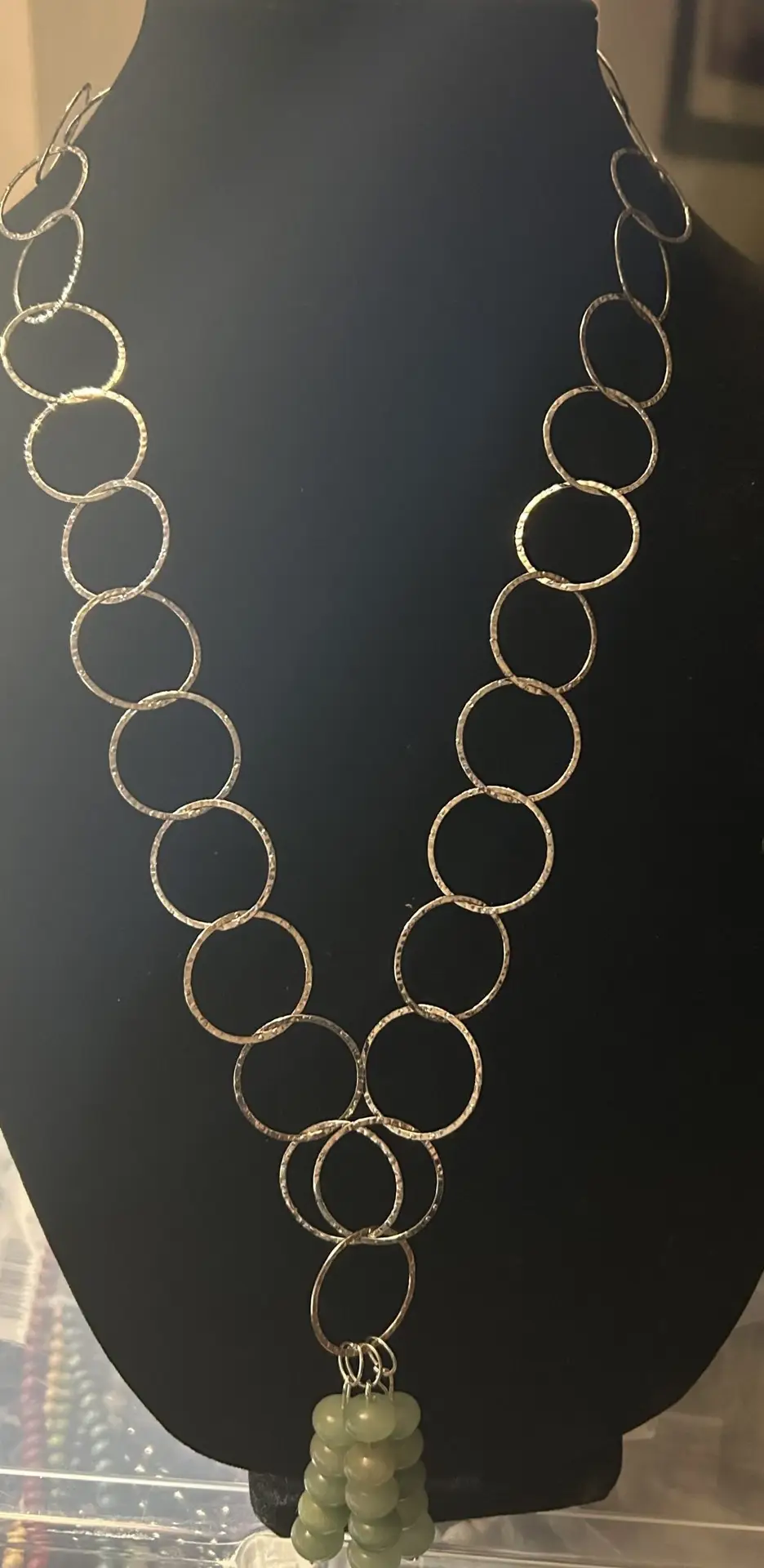 + Free ShippingCircle link chain with Aventurine pendant on a silver clasp.
